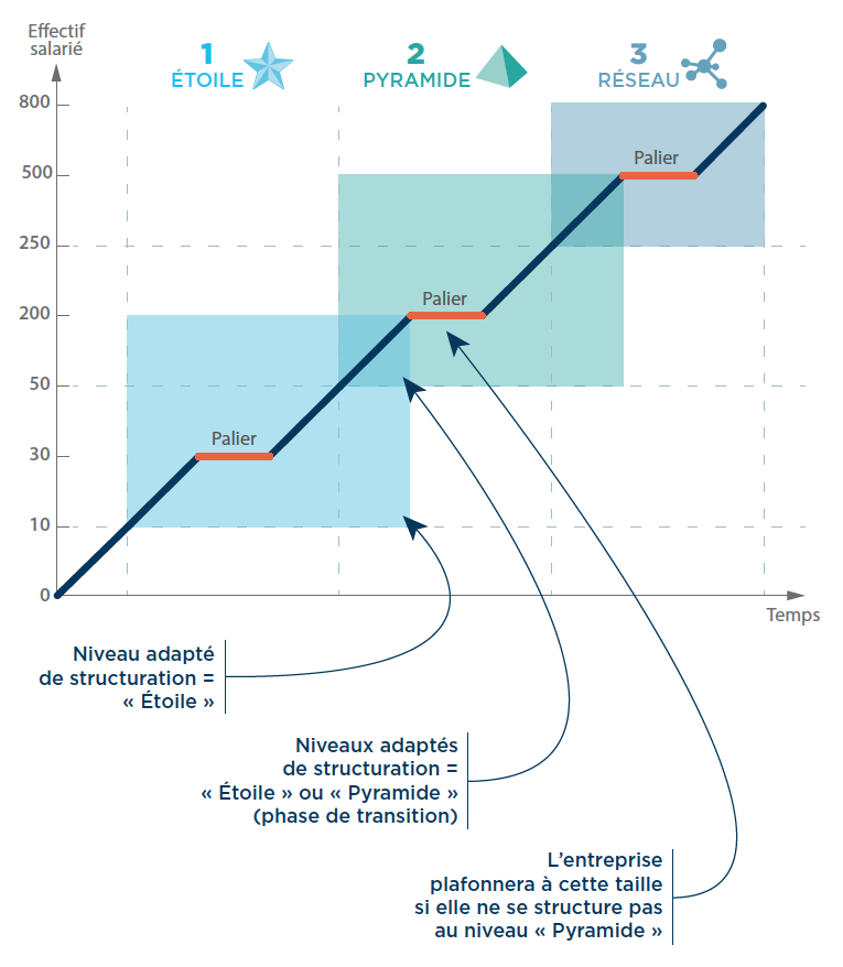 Pour trois étapes du parcours de croissance de l’entreprise, nous avons défini un niveau adapté de structuration :
